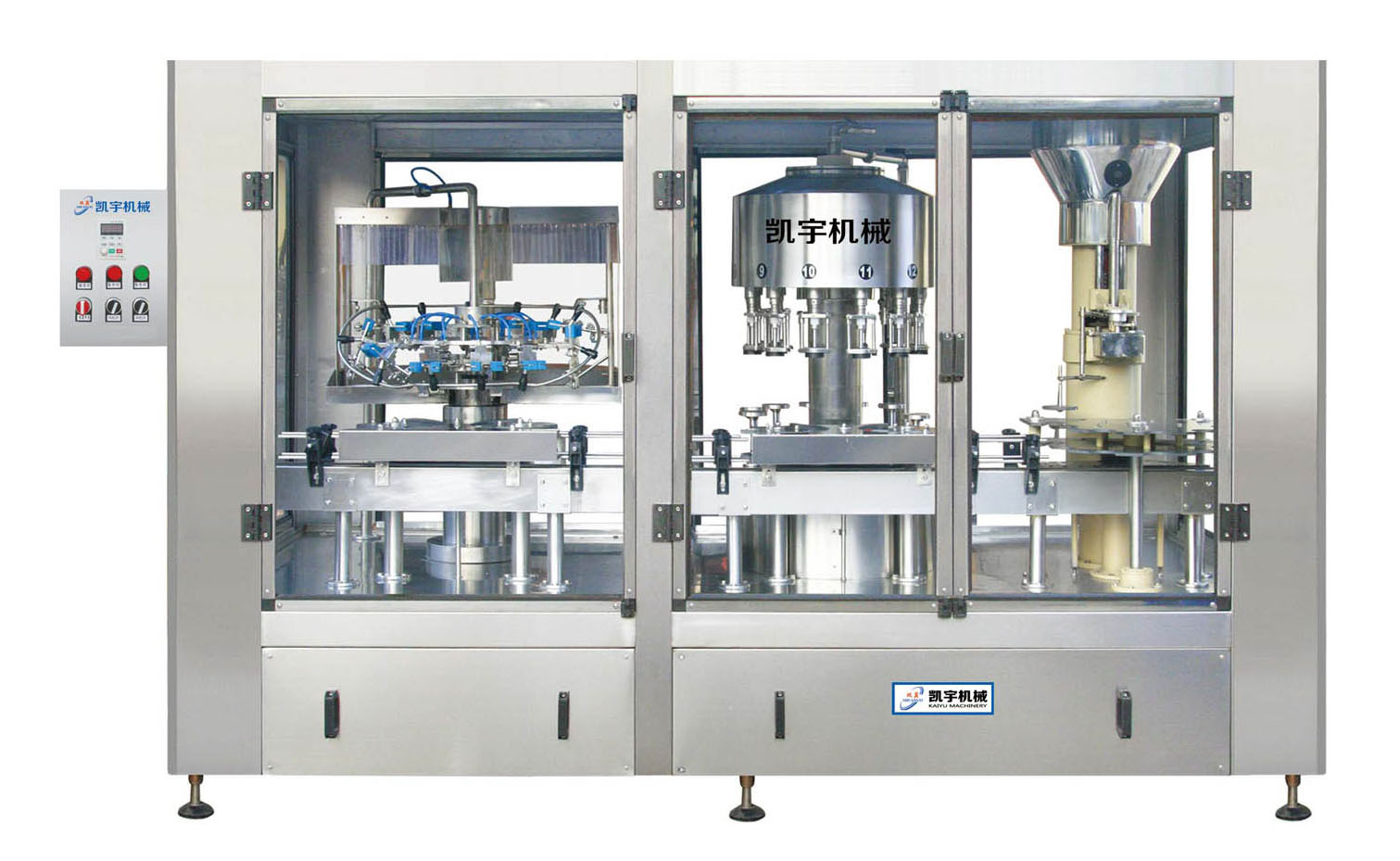 SYGZ-24-16-1型冲瓶灌装打塞三联机 三联体机主要是为葡萄酒、果酒灌装而设计的设备,本设备是将翻转冲瓶机、负压灌装机、打塞机有 机组合为一体,设备结构紧凑,节省安装空间 ...